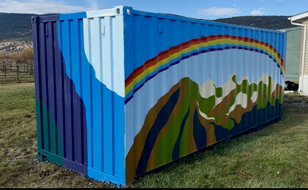 Rez Mural Mk II: The Sleeping Princess and Seaton Lake (Commissioned private Mural) — 2025 Spray paint on Seacan